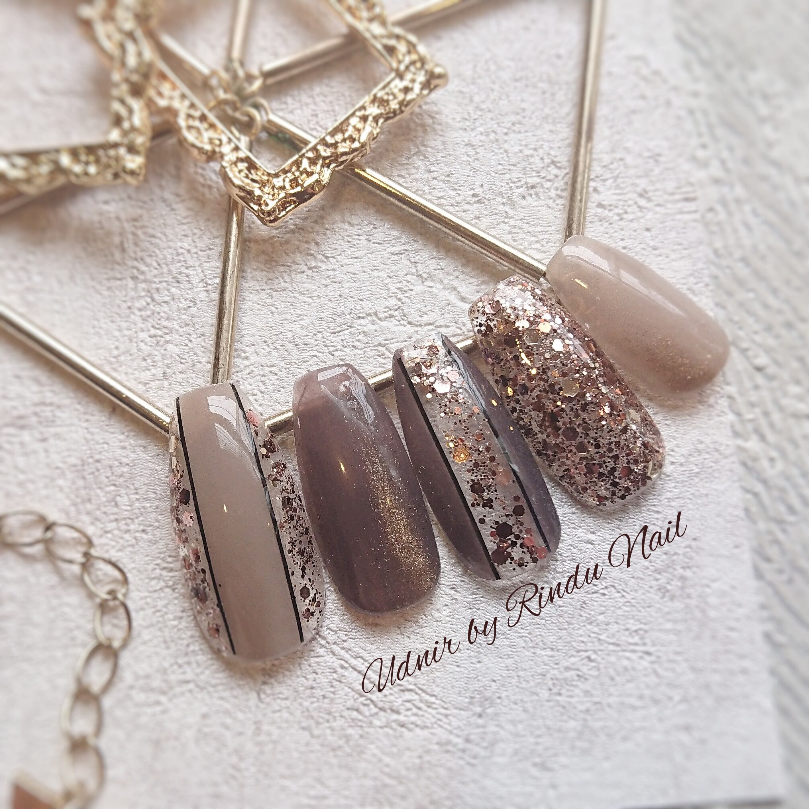 アーモンドを先端フラットのバレリーナ加工、長めのスタイル